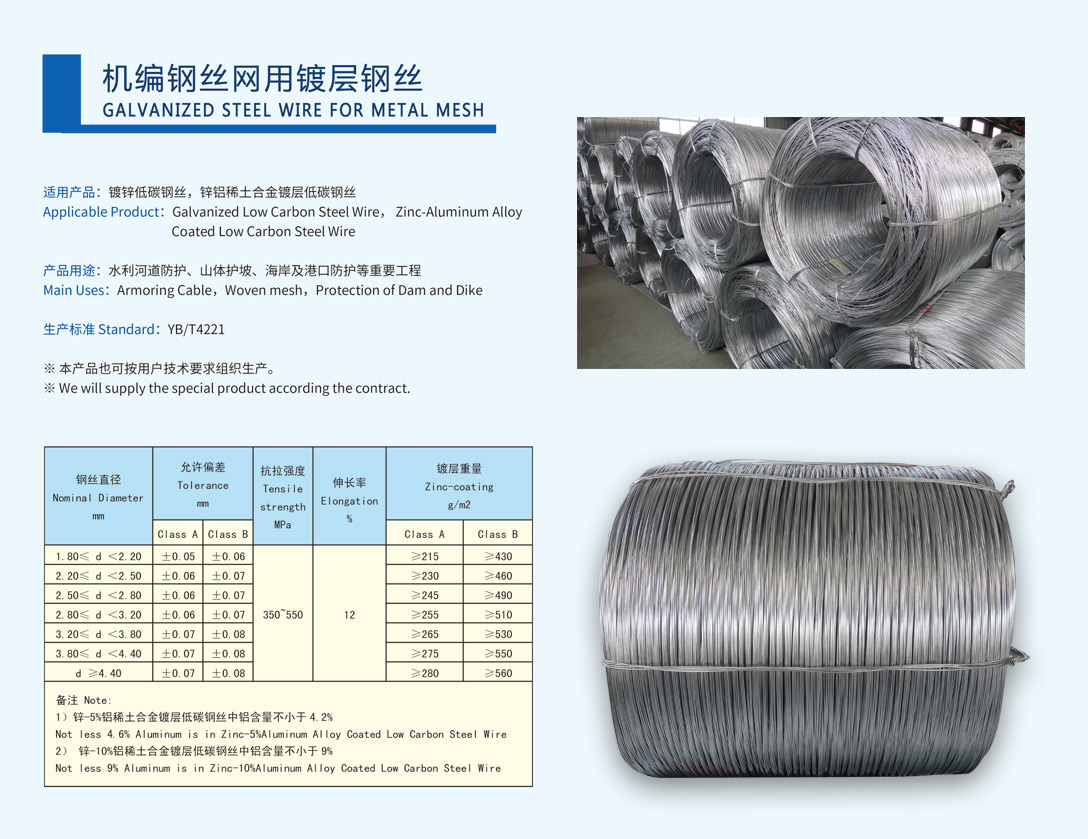 通信光電纜用鍍鋅鋼絲通信光電纜用鍍鋅鋼絞線機編鋼絲網用鍍層鋼絲防振錘用鋼絞線一般用途鍍鋅及鍍鋅鋁合金鍍層鋼絲及鋼絞線預絞式金具用鍍層鋼絲制釘用鍍層鋼絲